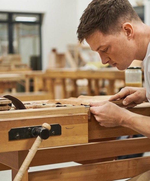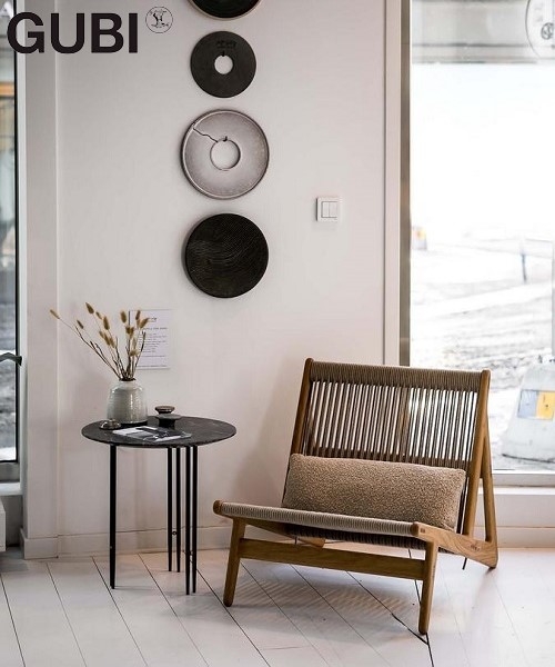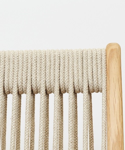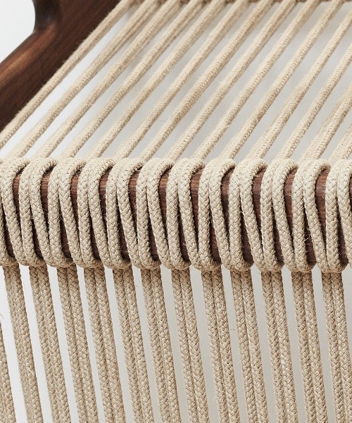Fotel wykonany z drewna z certyfikatem FSC, prezentuje tradycyjne techniki stolarskie, takie jak połączenie na mikrowczepy, klinowe połączenie wpuszczane i czopowe. W tej eleganckiej konstrukcji nie zastosowano ani jednej śruby ani gwoździa. Wykończony efektownym, ręcznie tkanym siedziskiem i oparciem, pięknie odzwierciedlającym powtarzające się linie identycznych drewnianych poprzeczek, rzucane geometryczne cienie tworzą wyjątkowe złudzenia optyczne. Drewno jest połączone w taki sposób, że widać jego koniec i słoje kierunkowe.